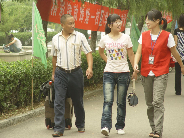 迎新工作现场气氛隆重热烈,同时,各个工作流程井然有序。今日的校园,花团锦簇、锦旗飘扬,把学校装点得格外喜庆,翠柏绿草错落相环凸显无限生机,为09级新生营造了一个到家的感觉。各部门、各组织在校区(学院)的统一安排和协调下,各项工作分工明确、配合默契,为新生办理报到手续提供一条龙服务,力求将迎新工作做到尽善尽美。校区(学院)在火车站、汽车站设新生接待处,安排专门老师负责接站,并开通免费班车为新生和家长的提供接送服务;各系和各职能部门把办公室搬到了迎新现场,进行现场办公,务求快捷方便的为新生办理入学手续;校区(学院)学生组织在学校入口处和迎新现场设置咨询服务站,迎新服务志愿者整装待发,为新生和家长提供热情的咨询和服务。