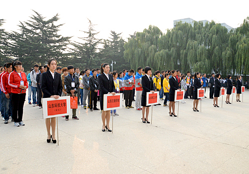 10月19日,由山东测绘学会、山东省测绘行业协会主办,山东科技大学泰安校区、南方测绘仪器公司济南分公司承办的“南方测绘杯”第七届山东高校大学生测量技能比赛在泰安校区举行。副校长兼泰安校区(泰山科技学院)党委书记、管委会主任(院长)王少鹏,山东省国土资源厅总经济师曲荣鹏,山东省地质测绘院总工程师潘宝玉,校区(学院)管委会常务副主任(常务副院长)蒋金泉,南方测绘仪器公司济南分公司总经理成德桂,资源与土木工程系、科研部、团委等相关部门、单位负责人出席了开幕式。来自全省7所高校的14支代表队参加了比赛。