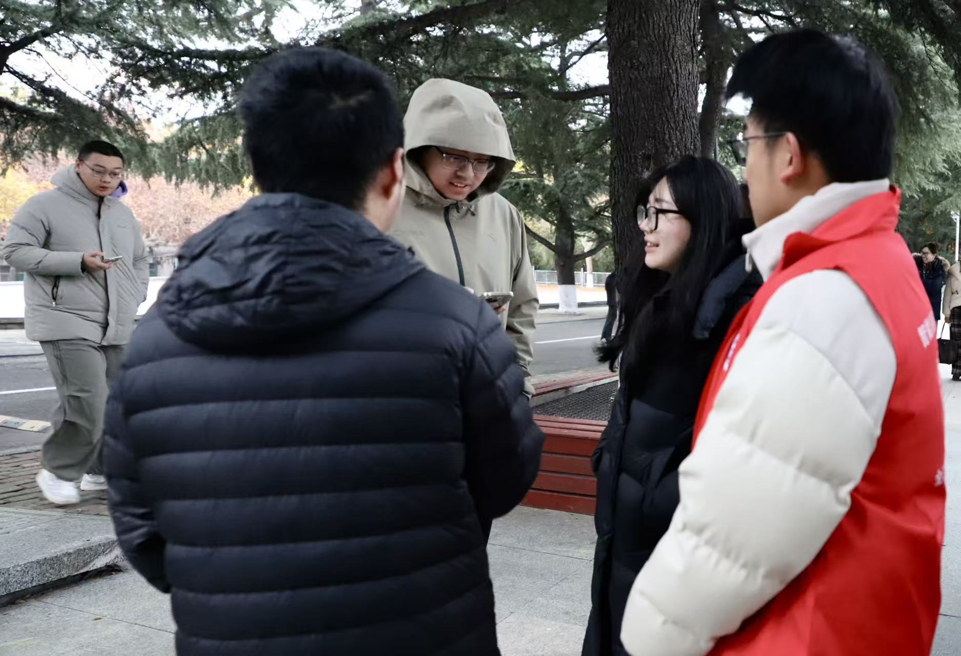 晚上七点,李梓祎的身影又出现在教学楼内。她与学院学生会权益服务部的同学一同开展晚自习督导志愿服务,巡查晚自习情况,密切关注各班的学习氛围与纪律状况。遇到有学业困惑的同学,她会轻声与其交流,鼓励大家互帮互助、共同进步,通过志愿服务的力量努力营造勤学、乐学、善学的良好学风。