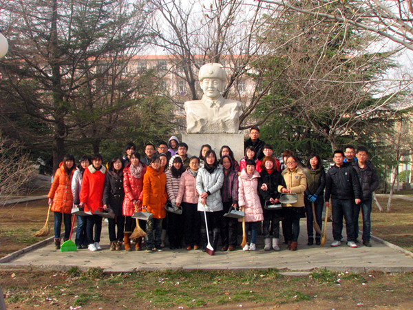 3月23日下午,雷锋园里活跃着数十位同学辛勤忙碌的身影,原来是文法系红帆学社社员和学生党支部第二党小组的同学们正在雷锋园打扫卫生。系学生党支部委员冯艳艳老师前来与同学一起参加了劳动。