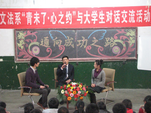 11月9日,由校区(学院)团委、学生处主办,文法系承办的第三期“青未了·心之约”与大学生对话交流活动在西校园八角楼举行。本期对话交流以“通向成功之路”为主题,邀请了我校校友、山东济宁矿业集团副总经理张广宇作为嘉宾与同学进行了对话交流。