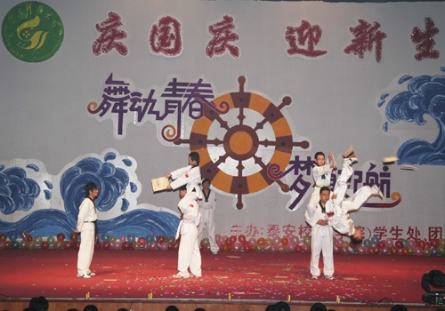 9月26日晚,由泰安校区(泰山科技学院)学生处、团委主办的“舞动青春 梦想起航—2008庆国庆 迎新生”文艺晚会在周末文化广场隆重举行。校区(学院)党委副书记刘传玺、各系党总支书记、相关部门负责人及08级新生观看了晚会。