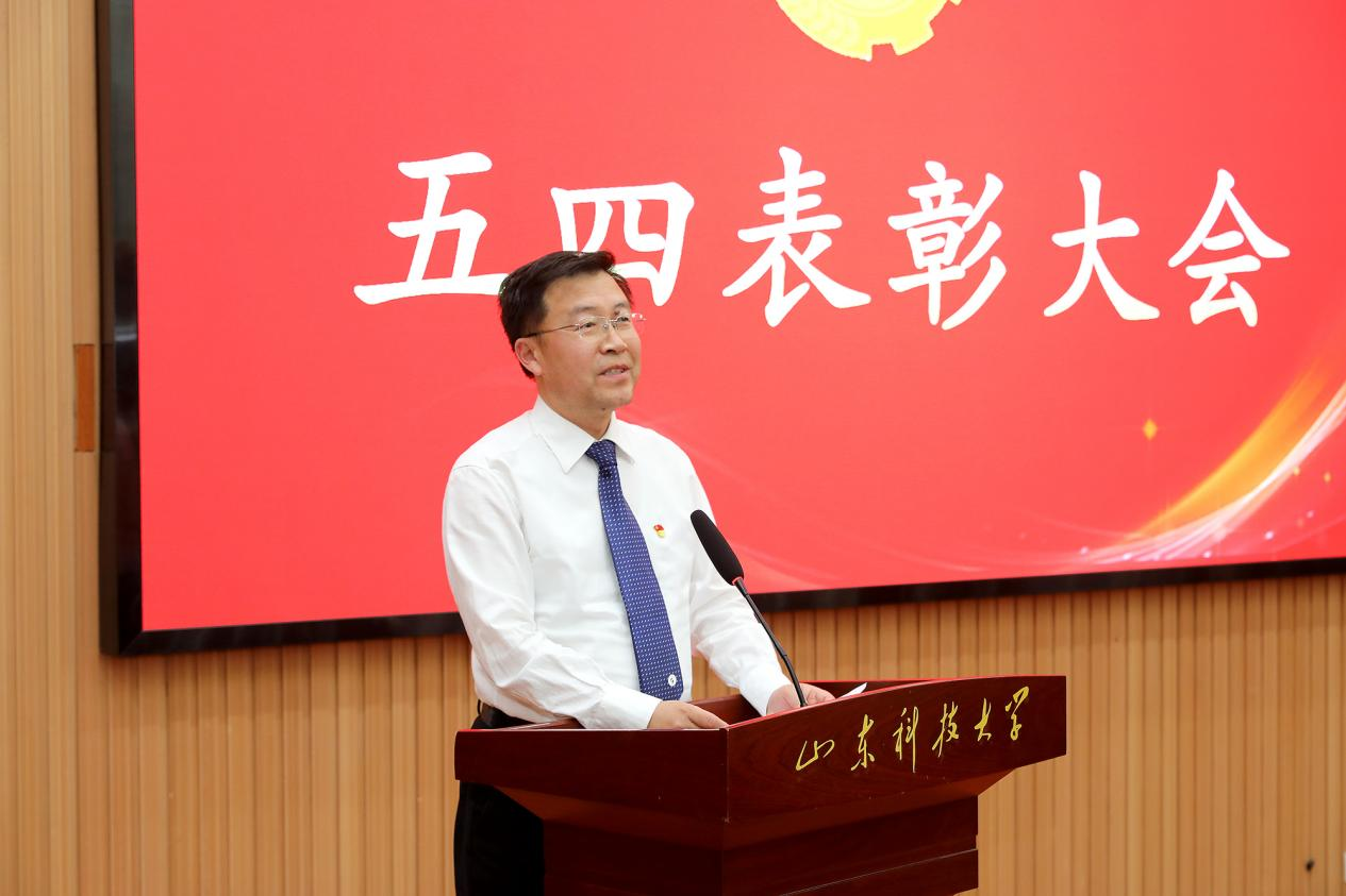 校区管委副主任兼学团工作部主任戴东宝宣读了《关于表彰2024年度共青团先进集体先进个人的决定》,决定授予高琳同志第5届山东科技大学青年五四奖章;授予智能装备学院团委、财经学院团委“五四红旗团委”称号;授予资源学院团委“先进团委”称号;授予工程管理2022-2等8个团支部“五四红旗团支部”称号;授予范丙珂等39名团员“优秀共青团员标兵”称号;授予张详贺等169名团员“优秀共青团干部”称号;授予李晓晨等470名团员“优秀共青团员”称号;授予孙若冰等10名同学“校园之星”称号;授予沈凤蕾等20名同学“校园之星提名奖”。