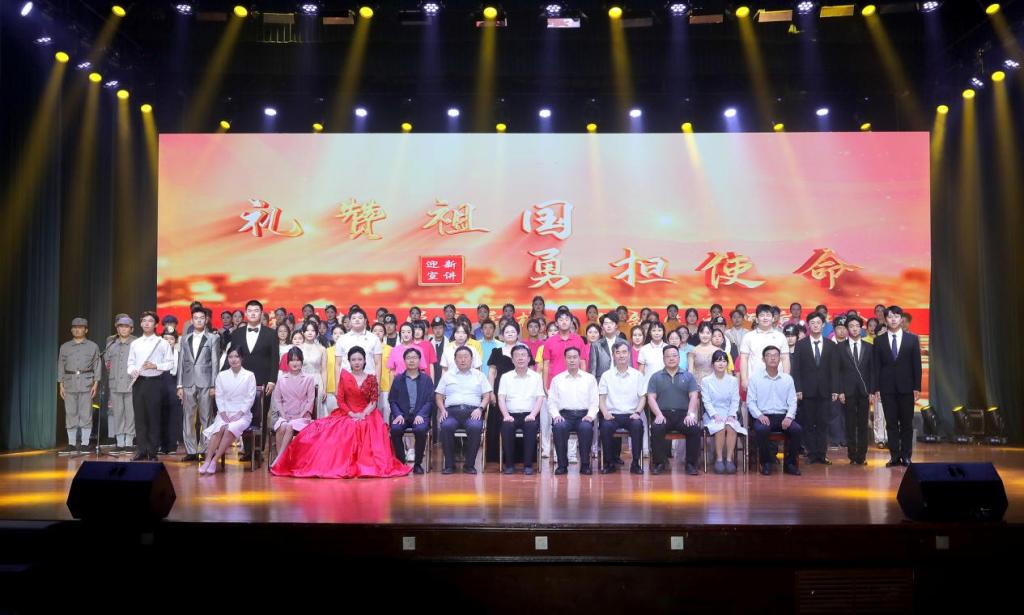 本次宣讲会通过艺术化的表现形式,将爱国主义教育与爱校荣校精神深度融合,既展现了学校深厚的文化底蕴和奋进精神,又激发了新生的家国情怀与使命担当。“弦歌不辍 薪火相传”篇章,学生讲述与AI数字人技术交融,《山东矿业学院院歌》与《山东科技大学校歌》的经典旋律接续唱响,唤起师生对学校发展历程的深情回望,彰显文化底蕴与精神赓续;“不忘初心 筑梦未来”篇章,聚焦学校第四次党代会擘画的“一三六八十”战略布局,在《领航》《不忘初心》的激昂旋律中,深入解读学校第四次党代会绘就的宏伟蓝图;“歌颂祖国 再启新程”篇章,融合诗音画《山河已无恙》、舞蹈《大河奔腾》和歌曲《我爱你中国》,交织先辈奉献与新时代复兴气象,以激昂旋律与灵动舞姿,激发新生家国情怀与青春志向;“踔厉奋发 强国有我”篇章,退役大学生士兵的朗诵《绽放校园的橄榄绿》等节目,以慷慨激昂的语调,回顾了军旅岁月的磨练与成长,抒发了对祖国和人民的赤胆忠心,展现了山科青年在强军报国、科技强国、志愿服务等领域的时代担当。宣讲在全场师生合唱《歌唱祖国》中圆满落幕。