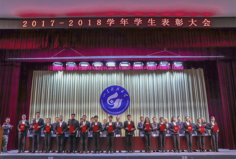 会上,校区、学院党委常委副书记刘传玺宣读《关于表彰2017-2018学年学生先进集体先进个人的决定》。决定颁发给杨晓等11名学生国家奖学金,张国伟等4名学生省政府奖学金,朱长玉等278名学生国家励志奖学金,李艳茹等49名学生省政府励志奖学金,张彩月等51名学生“金天牛成才奖学金”,李彩艳等10名学生“润兴成才奖学金”;决定授予土木工程2015-1班、国际经济与贸易2016-1班两个班级山东省“先进班集体”称号,工程造价2016-2班等8个班级校“先进班集体标兵”称号,机械设计制造及其自动化2016-1班等12个班级校“先进班集体”称号,土木工程2016-2班等13个班级校区、学院“优良学风班”称号,东校园1号楼206等20个宿舍、西校园2号楼102等26个宿舍“和谐宿舍”称号;授予代淼等7名学生山东省“优秀学生”称号,张中进等4名学生山东省“优秀学生干部”称号;授予陆新时山东科技大学“十大优秀学生”称号,孙留倩等10名学生校区、学院“十大优秀学生”称号,孟寒寒等140名学生校“优秀学生标兵”称号,贾本卿等683名学生校“三好学生”称号,商世昌等540名学生校“优秀学生干部”称号,姜丽等192名学生校“优秀学生”称号,陈明哲等235名学生校级各类“单项奖”称号。
