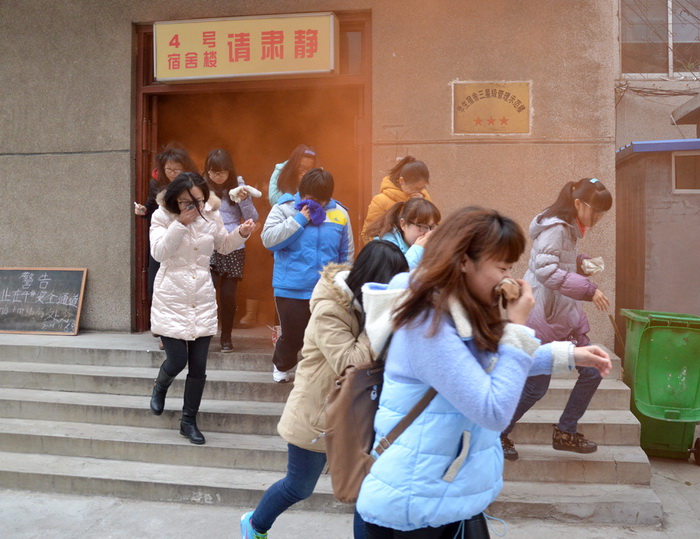 为提高处置火灾应急情况的组织指挥、协调配合能力,增强师生的消防安全意识和疏散逃生技能,12月9日下午,校区在东校园3、4号学生宿舍楼,组织开展了疏散、逃生演练,380余名女生参加了此次演练。