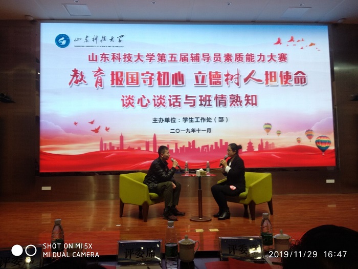 11月29日,第五届山东科技大学素质能力大赛在黄岛校区落幕。经管系选派辅导员谭娜、卢业美、王备备组队参加,经过激烈赛事,最终以总分第二名的成绩夺得团体二等奖,王备备和卢业美分别荣获个人最佳风采奖。