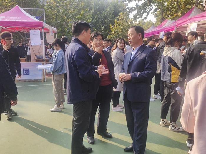 10月20日,山东省2019年高校毕业生集中招聘活动(综合类)暨山东科技大学泰安校区毕业生供需见面会在东校园体育场顺利召开。校党委副书记兼泰安校区党委书记、管委会主任王少鹏到信息工程系服务区指导招聘服务工作。系党总支书记陈福刚、党总支副书记裴国栋、团总支书记蒲蓬勃、专职辅导员高琳和曹园、各教研室主任、学生会主席团部长团成员在服务区为毕业生切实提供服务。