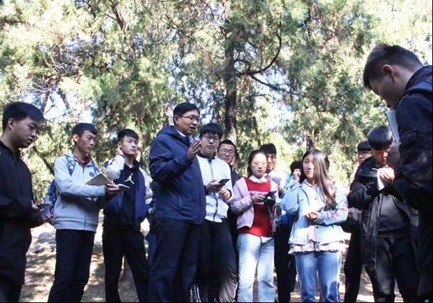 实习过程中,指导老师详细向同学们讲解了各地岩性和地质构造、地质罗盘仪的使用、岩层产状的测定等内容。实习期间,同学们在蒿里山、虎山水库、曲阜石门山等地对原地混合花岗岩、竹叶状灰岩标本、崩塌地质遗迹等地质现象进行实地考察。