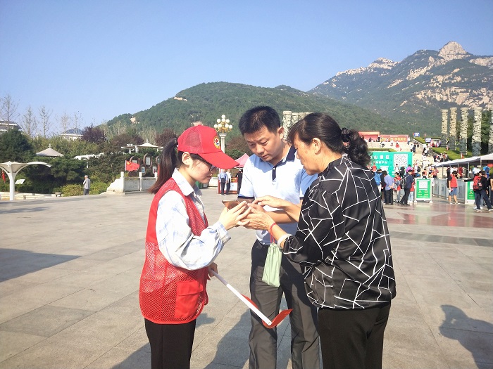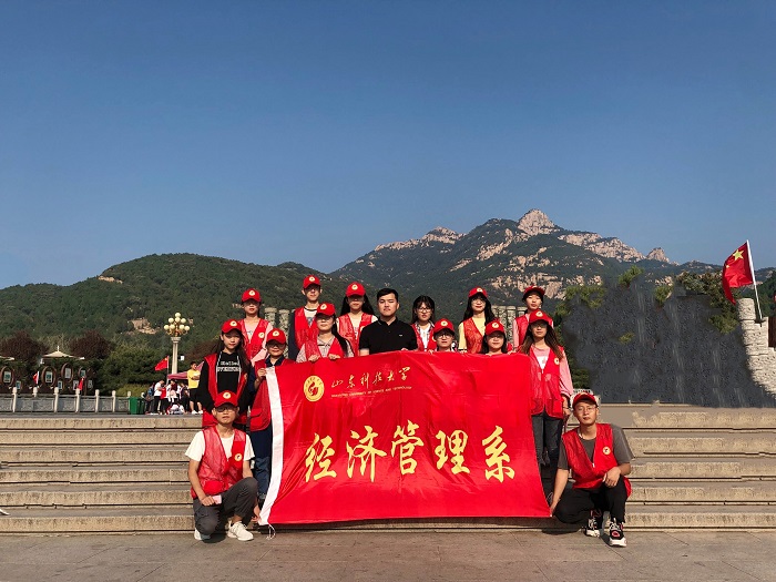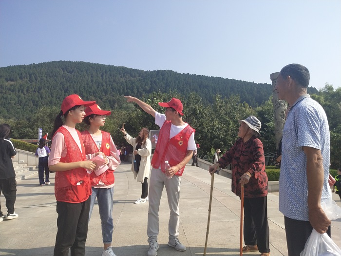 10月1日,经管系联合泰安主题党日活动中心于天外村广场组织开展“泰山先锋”志愿服务活动。辅导员张泽老师与经管系十四名青年志愿者参加本次活动。