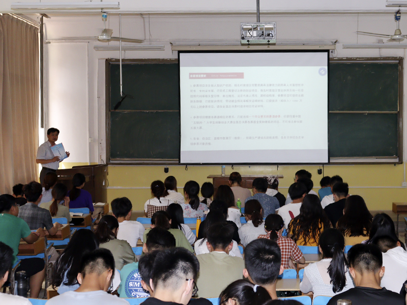 朱庆豪以《互联网+大赛解读及校赛介绍》为专题,从参赛要求、评委视角、商业计划书、校赛要求四个方面对“互联网+”大赛进行了全面深入剖析。他讲解了参加比赛的条件,并介绍了互联网+比赛的多个赛道,其中着重介绍了创意组、初创组赛事要求。他从评委的角度向同学们传授比赛经验并对项目策划书进行了拆解分析,从封面到项目背景到主体内容再到最后的经费预算,认真详细指导学生如何准备。最后,他向同学们强调了校赛的要求,鼓励同学们好好准备,努力取得好成绩。朱老师的讲解内容精要,语言简洁,逻辑清晰,完整地呈现了互联网+大赛的背景、意义和参赛要求,对学生进行了创新、创意、创业的启迪,激发了同学们的创新思维和创意动力,受到同学们的热烈欢迎。