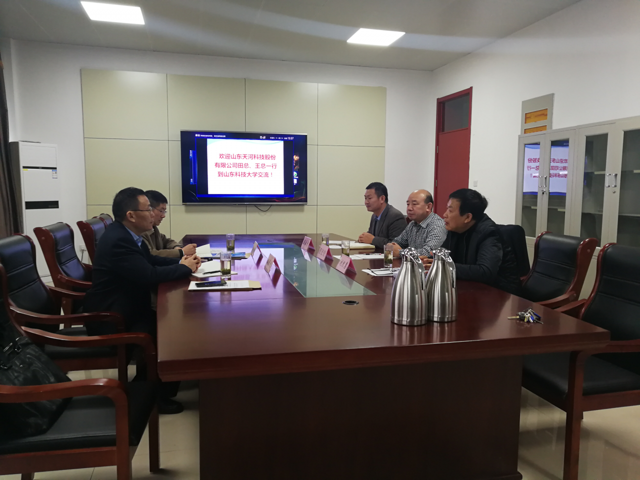 2018年11月15日,山东天河科技股份有限公司田胜利董事长和王顺新副总经理一行来校区进行专业交流。机电系主任刘然慧、副书记殷永贵和资土系主任贾宏俊接待来宾。双方就矿业类专业人才培养和市场需求,尤其对机电类人才情况进行深入探讨。田胜利董事长详细介绍企业情况,并就学生实习实践接待、就业安排与教师科研项目以及新产品开发提出合作意向要求。贾宏俊和刘然慧分别介绍各专业的情况,同时对山东天河科技股份有限公司领导的到来表示欢迎,对公司进一步承担相关合作工作表示感谢。