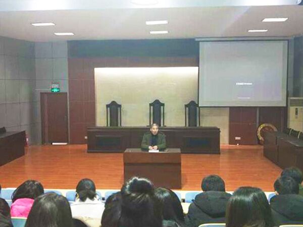 12月25日,文法系主任、学生就业导师张学银在模拟法庭为毕业生作题为《心动+行动:将航船驶向理想彼岸》的报告,报告会由团总支书记郭涛林主持。
