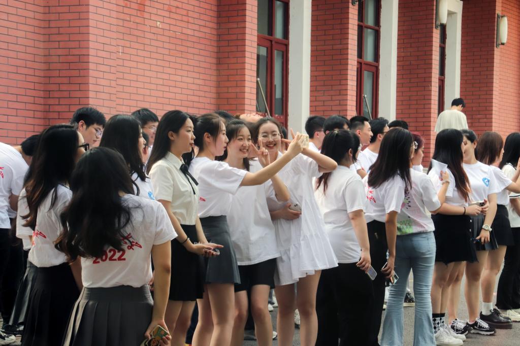 夏风和煦,蝉鸣声起,莘莘学子身披学士服和班服,在教学楼前拍摄毕业照集体合照。无论是操场、林荫道还是鹰湖边,毕业生们服装统一,队形别致,在每一个熟悉的角落里用相机记录他们的大学生活。学子们三五结群,或搞怪,或温馨,伴随着每一声快门的响起,在镜头前展现出一个个灿烂笑容,于一帧帧光影间留下青春的记忆。
