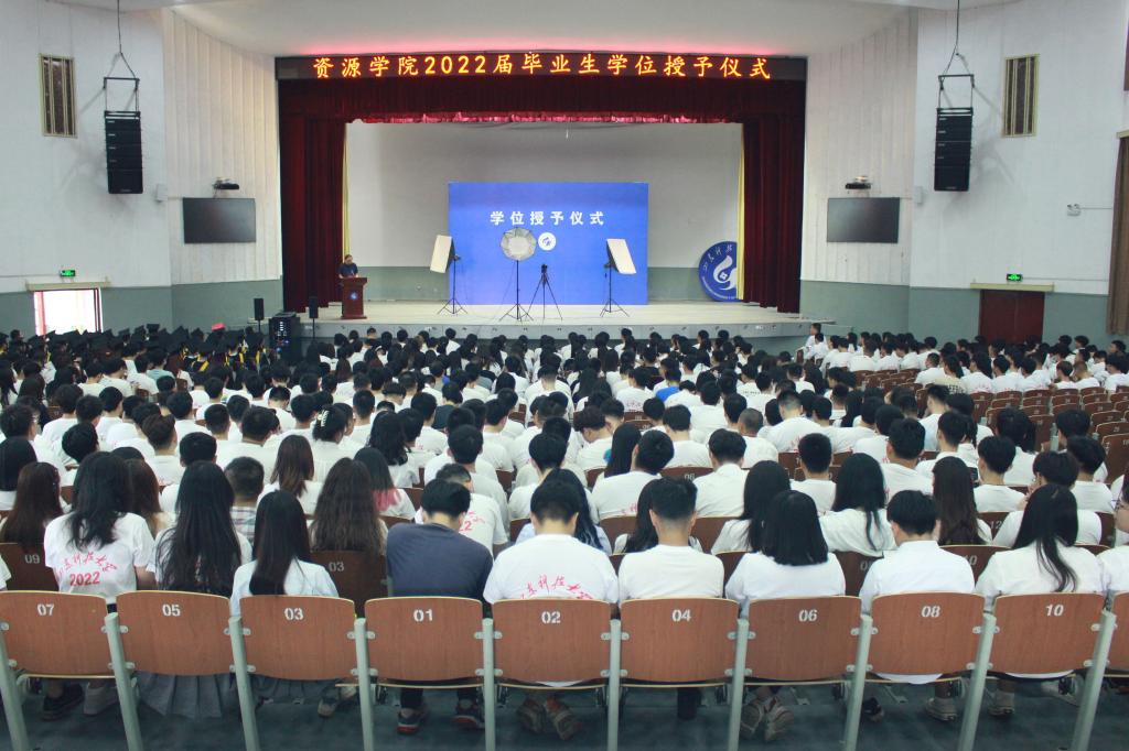 资源学院党委书记高尚宇在仪式上致辞。他向圆满完成学业并顺利获得学位的552名毕业生表示热烈祝贺,对毕业生们取得的优异成绩表示肯定,并对同学们提出三点希望:一是要知重负重、破难奋进、甘于奉献,主动到党和人民最需要的一线挑重担、破难题,在摸爬滚打中增长才干、在层层历练中积累经验,努力成为报效祖国、服务人民的先行者;二是要知行合一、以行践知,在实践中培养专业精神、丰富专业知识、提高专业能力,努力成为各行各业的行家里手、开路先锋;三是要孜孜以求,笃学不怠,不断优化知识结构、增强学习能力,锻就过硬实力,努力成为可堪大用、能担重任的新时代有为青年。