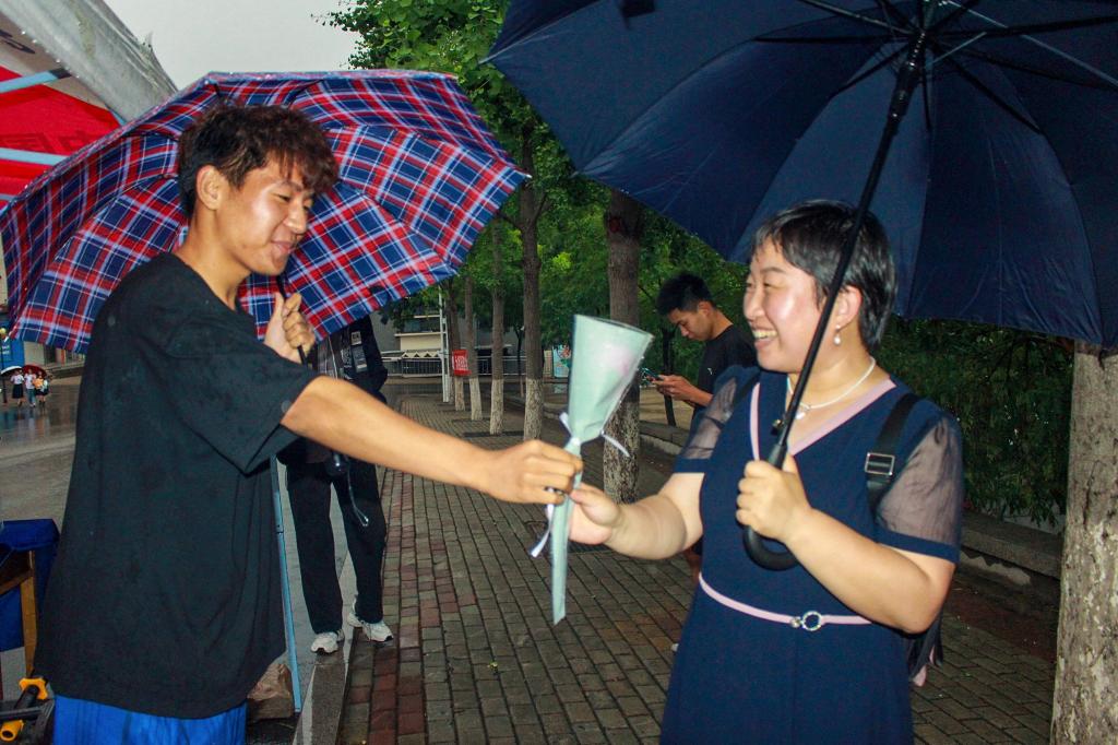 “真的很感动,没想到学院会给我们准备这种惊喜,娇艳欲滴的大红玫瑰让我们对未来充满无限期待与憧憬!”从学弟学妹手中拿过鲜花后,毕业生崔文静动情地说道。一路繁花似锦、未来如此可期,“毕业花站”承载着资源学院师生的情深意浓与深深祝福,让毕业生花在手中,暖在心中。