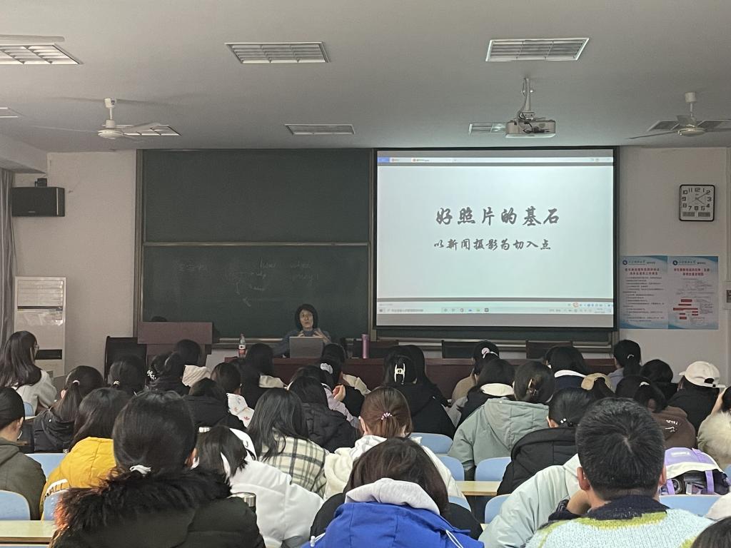 史老师以如何拍出“好”照片为主题,将新闻摄影(纪实摄影)做为切入点展开本次讲座。提出:明确的主体、鲜明的主题、有代表性的瞬间以及合适的表达方式是一张优秀照片应该具备的四大特征。同时,她强调,同学们在日常拍摄活动中要自觉注意拍摄角度、构图等,不断锻炼摄影思维,学会用摄影语言表达思想。