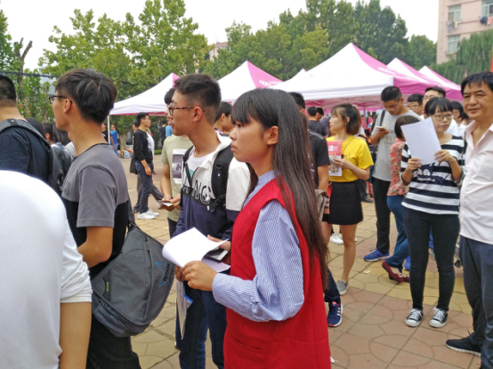 迎接完上午的新生,周雪决定去吃午饭。在与记者交谈中周雪说:“当志愿者累是有些累,但看到他们能够顺利地完成入校,真的很开心。”(文:李玲 周潇 图:李玲 编辑:李永乐)