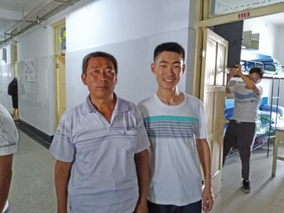 姜海与他的父亲合影,谈到对孩子的期望,姜海父亲笑着说:“希望他能好好学习,自己照顾好自己,这些就行了。”