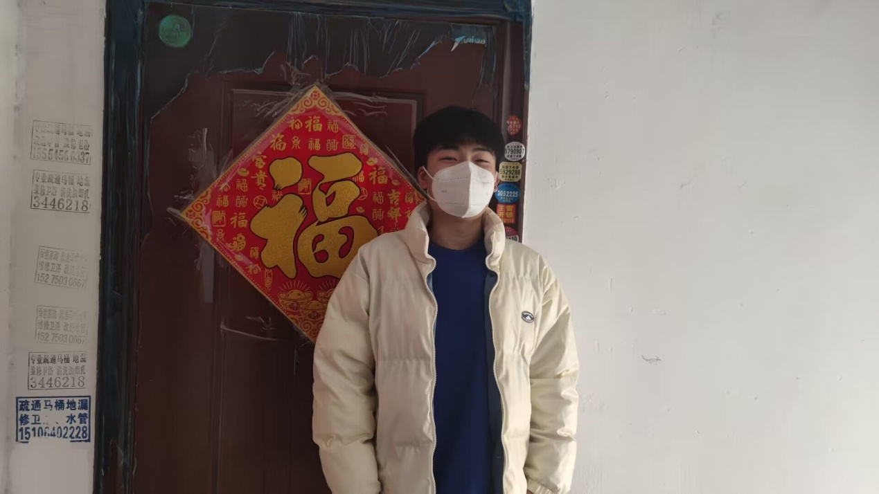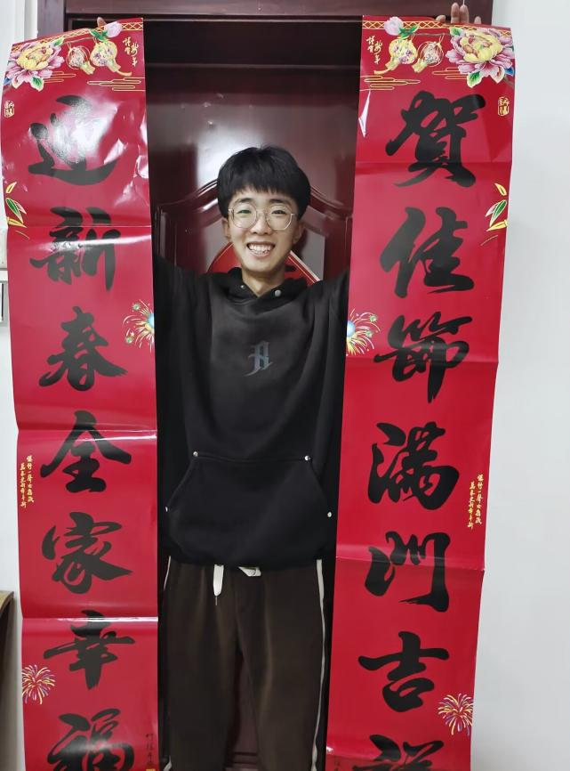 过程装备与控制工程21-4班杜忠业在山东聊城送来迎新祝福,“贺佳节满门吉祥,迎新春全家幸福。”祝愿祖国在新的一年里步步繁荣,开创辉煌,祝愿山东科技大学的老师和同学们兔年美满乐,幸福万年长!