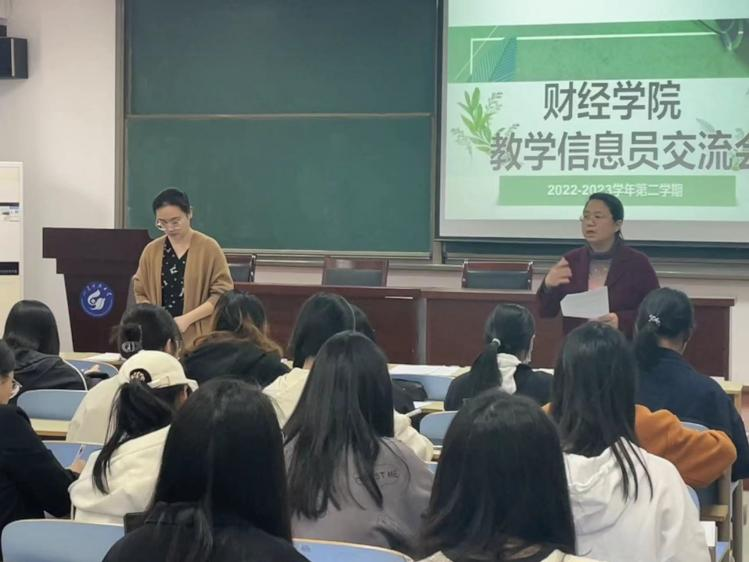4月14日下午,财经学院组织召开了教学信息员交流会。教科办李莉娜、张雯雯老师以及非毕业班级全体学习委员参加了会议。