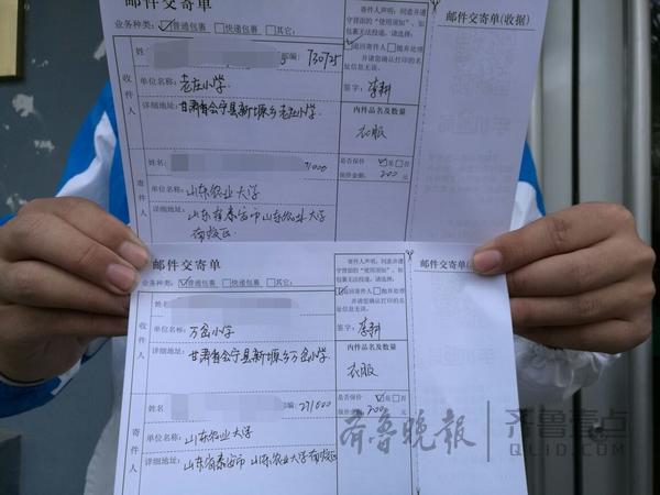 活动现场,来自山东科技大学、山东农业大学、山东财经大学东方学院的学生,将收到的衣物,分别打包后,运到邮局,寄往甘肃的两所学校。山东农业大学学生李耕介绍,在暑假期间,他参与了西部支教活动,在甘肃会宁地区,那里的孩子们穿着朴素,家庭条件困难,需要大家的帮助。“回学校之后,我把相关情况和同学说了,大家一致同学,把旧衣物拿出来,捐给他们。”