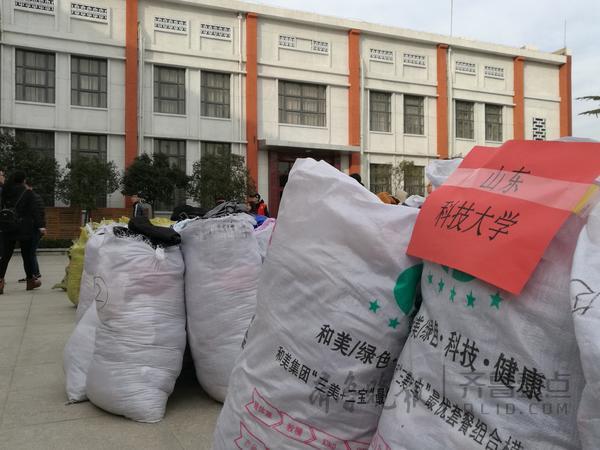 24日下午,山东科技大学礼堂前,泰安首届驻泰高校旧衣捐赠活动启动,7000余件旧衣物,经过分拣、清理、分类打包后,将邮寄到贫困山区。