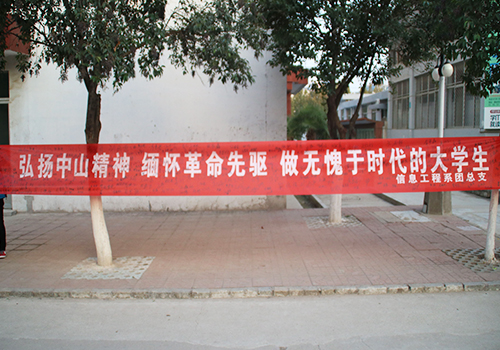 信息系在11月12日在礼堂前举行“纪念孙中山诞辰150周年”签字活动。信息系党总支副书记裴国栋和新生辅导员高姣姣老师、学生党员、入党积极分子、广大学生出席活动。