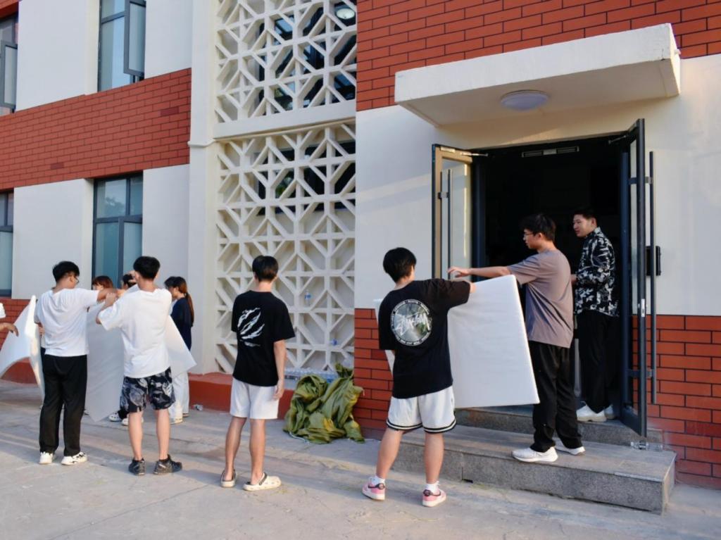 工作筹备阶段,学院团委召开专题会议,明确任务分工与流程安排,安排专人对卧具数量进行逐一清点,并全面巡查宿舍设施安全状况,切实做到责任到人、保障到位。在搬运过程中,师生协作有序、配合紧密,分别承担物资清点、搬运分发、床位整理及环境清洁等多项任务,实现了从卧具核验到最终安置的全流程无缝衔接,确保了整体工作的效率与精准性。
