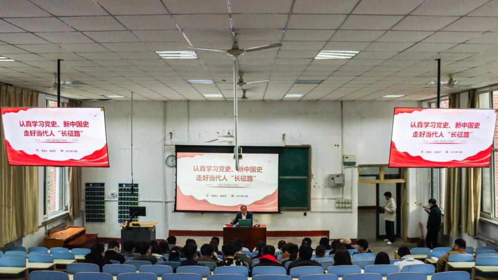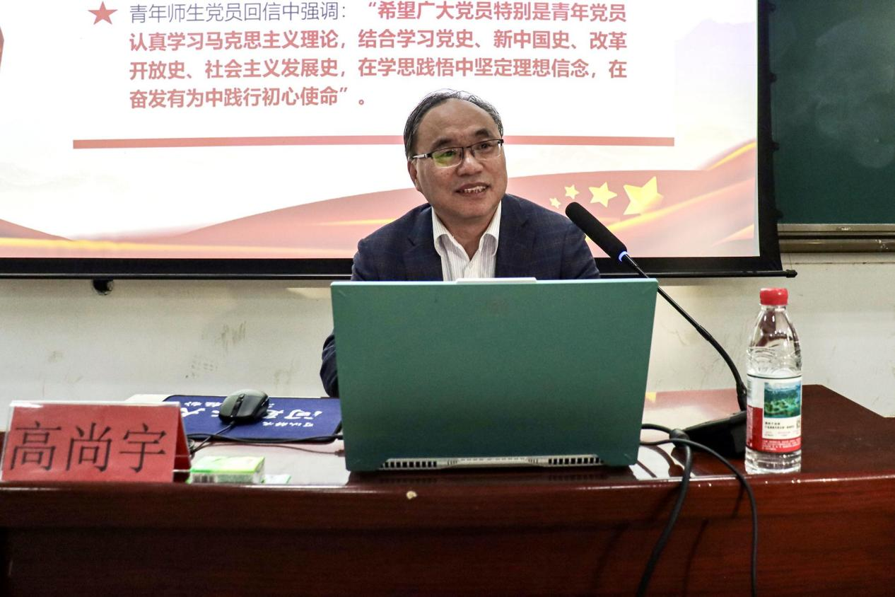 10月29日,资源学院党委书记高尚宇在1A107教室为第43期入党积极分子讲授“认真学习党史、新中国史,走好当代人‘长征路’”专题党课。