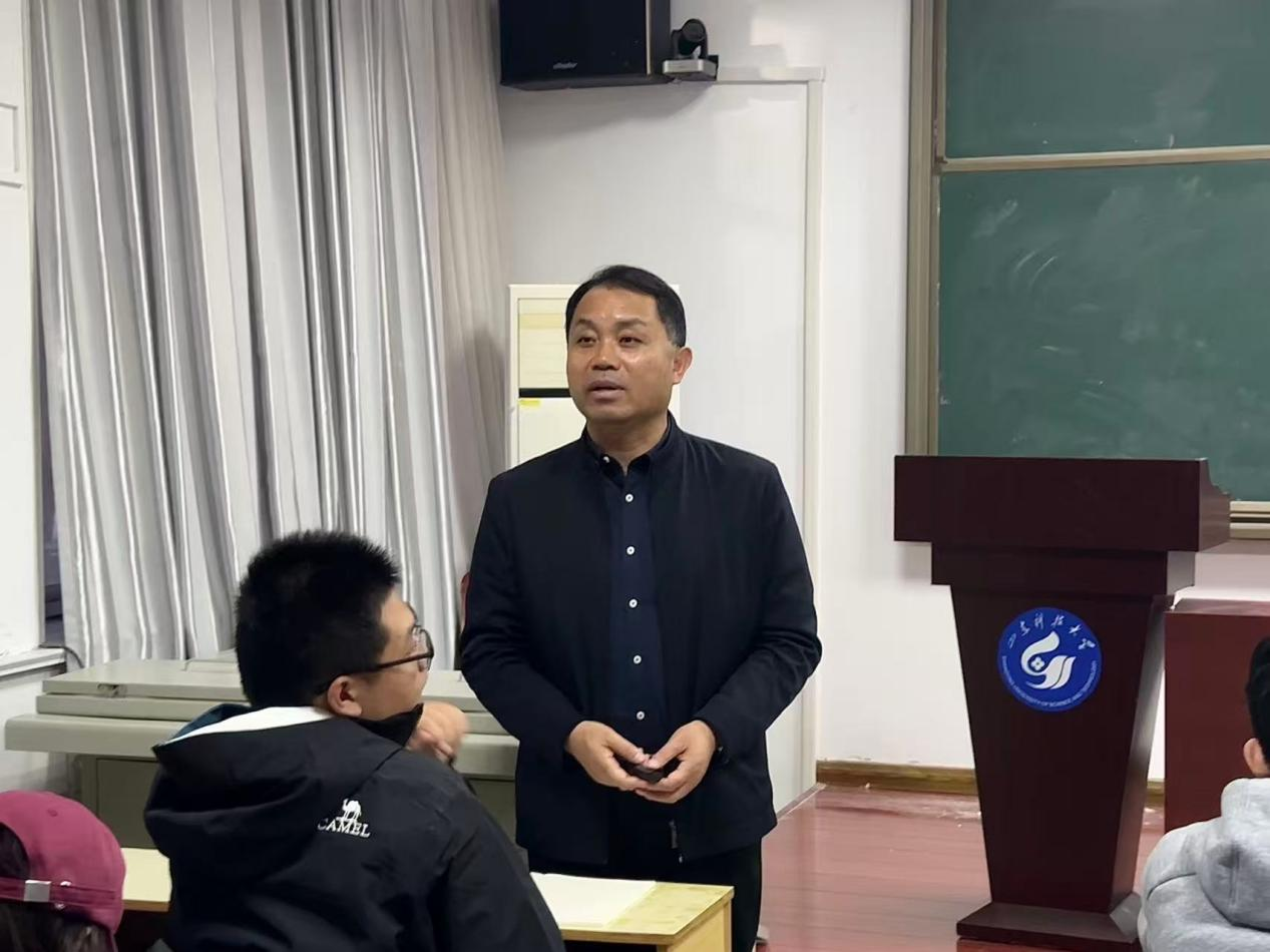 课上,刘庆志紧扣主题,以中美贸易摩擦的演进脉络为切入点,从当前全球经济格局变革、贸易摩擦的新特征与深层逻辑、中国经济发展的战略定力等维度,结合党的二十大关于“加快构建新发展格局,着力推动高质量发展”的战略部署要求,以及“十四五”规划实施中的实践案例,系统阐释了习近平新时代中国特色社会主义经济思想的时代价值与实践路径。刘庆志还结合青年成长实际对学员们提出期望:一是要将政治理论学习融入日常,在理解国家经济政策中坚定政治立场;二是要把专业学习与国家发展需求结合,在学科实践中践行青年责任;三是要增强风险意识与创新思维,在复杂环境中锤炼攻坚克难的能力。