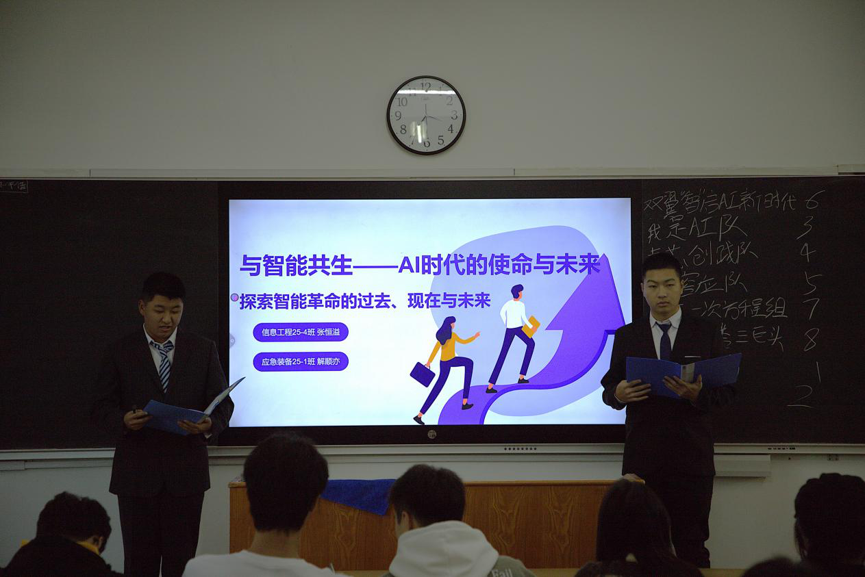 比赛以ppt展示的形式进行,8组参赛选手围绕“AI与时代发展”主题依次展演。有的选手从AI技术溯源切入,结合典型案例剖析其社会影响;有的选手以智能家居、智能交通等生活场景为载体,直观呈现AI技术的应用价值;有的选手聚焦未来展望,围绕AI伦理议题展开思辨并提出应对思路,充分展现了独到的见解,比赛现场氛围热烈。