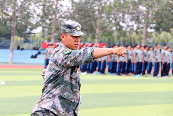 “动作要到位,出拳快准狠,拿出男子汉的气概!看见了吗?就像我这样”,一位教官边教导边示范演练。