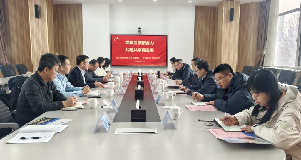 为探索党建引领事业发展新路径,2月3日,资源学院与煤田地质局第五勘探队联合开展了主题为“党建引领聚合力共建共享促发展”的党建共建活动。山东科技大学泰安校区党委书记吴正龙,资源学院党委书记高尚宇,煤田地质局第五勘探队党委书记、队长陶会林及双方相关负责同志共同参加活动。