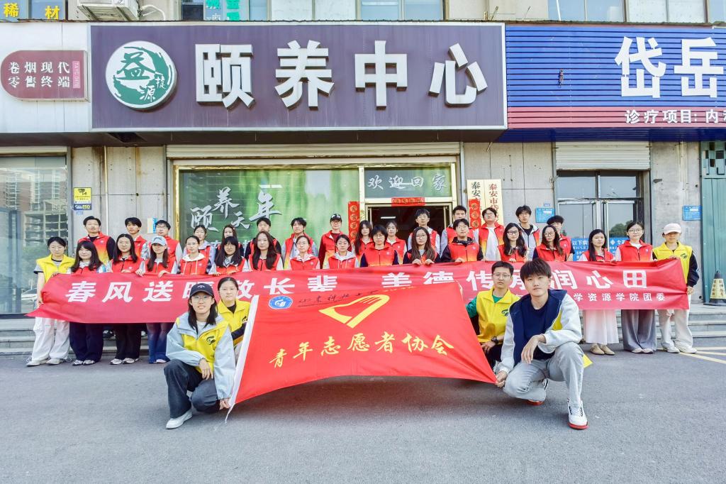 为弘扬孝亲敬老传统美德,践行志愿服务精神,4月25日,资源学院30余名青年志愿者前往泰安市岱岳区益捷源颐养中心,开展“情暖夕阳,志愿同行”主题志愿服务活动。