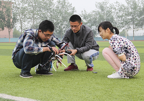 近日,信息工程系电子信息科学与技术13-2班学生李庆、王玮、孙小川、张群四人在兴趣的激发下,在数字电路、模拟电路等专业课程基础知识的储备下成功制作完成四轴飞行器。组织者李庆说:“由于在校区、学院新闻中心电视台工作,参加大型活动时普通摄像机不能拍摄高空全景,存在灵活性差、视野范围小等弊端,就有制作航拍器的想法。同时收到2014年泰安市大学生科技创新行动计划项目申报的通知,推动了我与同学们开始制作飞行器,接着我们就交流讨论、整理思路、借阅图书、网购器材投身到了准备过程中。”
