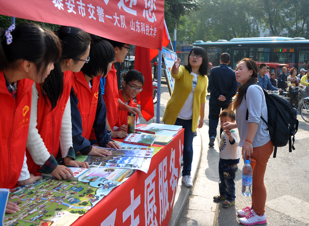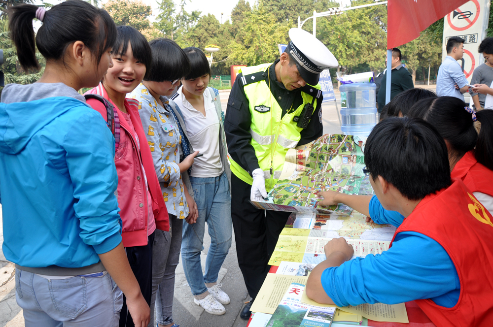 10月1日,校区、学院青年志愿者协会10余名大学生交通志愿者正式上路执勤,在城区开展文明交通志愿服务活动,协助交通警察引导游客遵守交通规则,为游客提供便民服务。