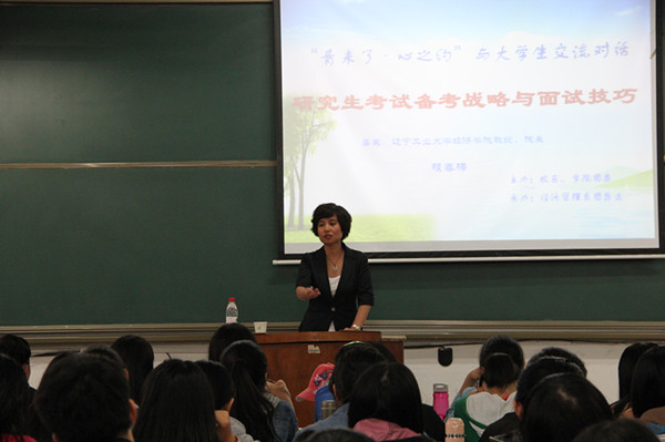 近日,为更好的指导学生考研,经管系特邀辽宁工业大学经济学院院长、教授程春梅与同学们进行了面对面交流。