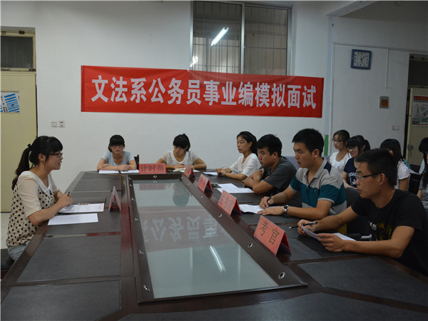 6月19日下午,由文法系团总支主办、系学生会承办的公务员事业编模拟面试活动在系会议室成功举办,文法系主任张学银到现场对活动进行指导。