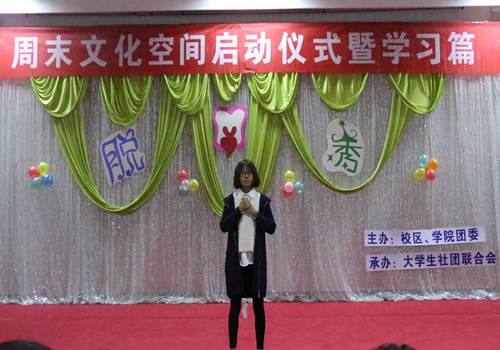 10月27日,由校区、学院团委主办,校区、学院社团联承办,各系社团部以及各社团协办的周末文化空间,在东校大学生活动中心举办启动仪式,同时展开学习篇——脱口秀大赛的激烈角逐。