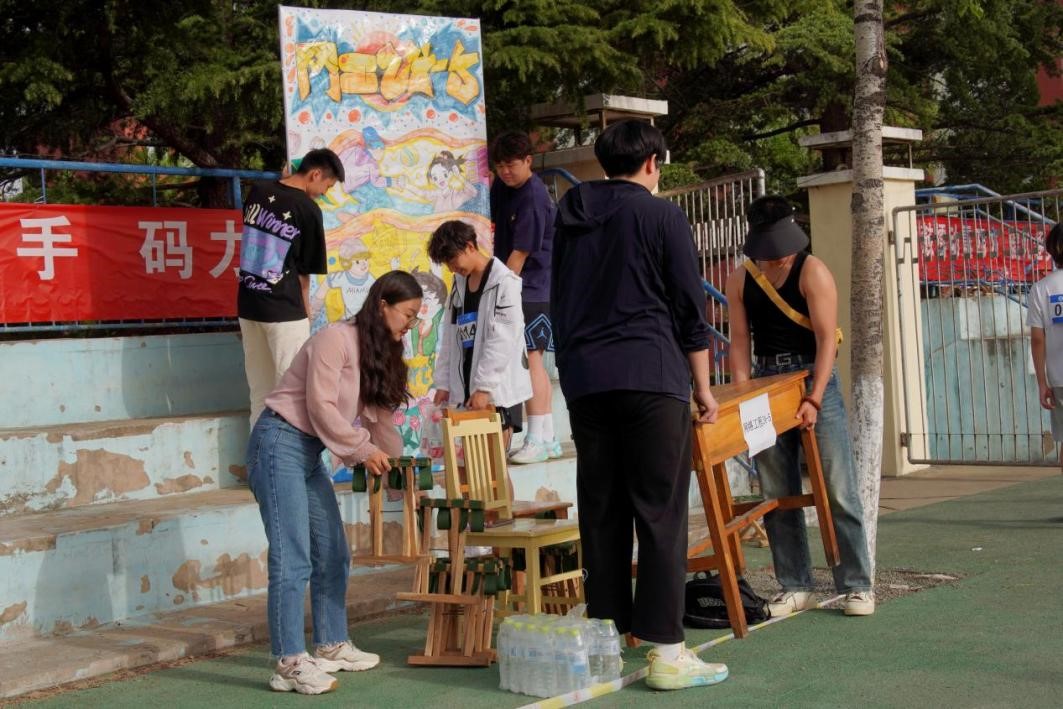 离场前,蔡婧婧和同学们一起整理宣传牌、桌凳、水杯等物品,逐一清点人数,确保每一位同学都安全离场,并叮嘱同学们回到宿舍后及时补充水分、好好休息。