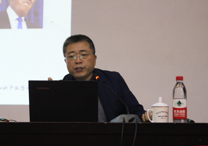 11月6日,济南市诚智商标专利事务所有限公司总经理王汝银在东校园四号楼报告厅为资土学子作题为“专利撰写与申请”学术报告会,系副主任王清标主持会议。