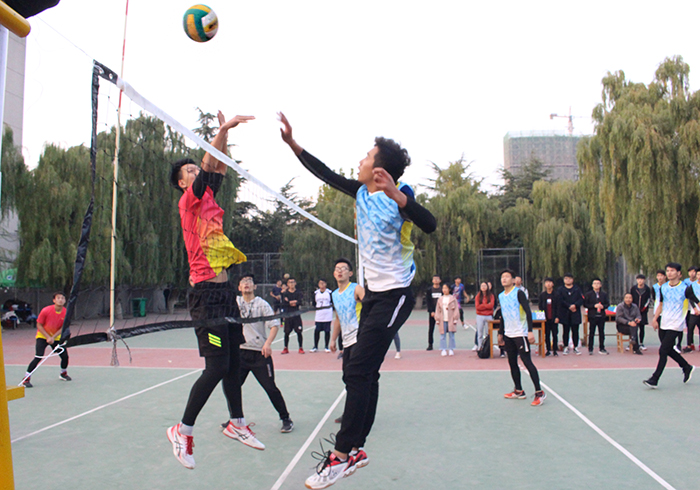 11月1日,资土系排球队在西校园排球场迎战文法系,取得二连胜。