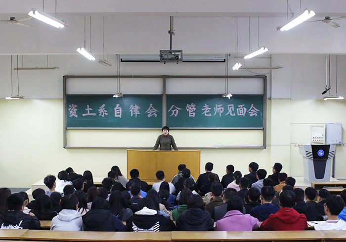 10月30日,资土系自律会召开全体工作会议,团总支辅导员洒艳主持会议,系自律会全体人员参加。