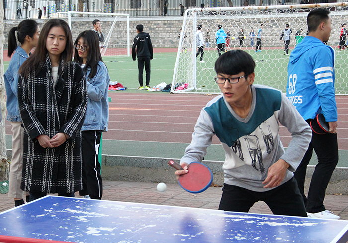 10月29日,资土系第一届东校园乒乓球班级团体赛初赛在操场火热进行。