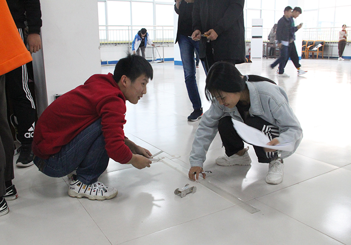 比赛中,各小组在限定的时间内通过考虑弹出范围、动力等因素对小车进行设计。经过15分钟的制作,一批大小不一、形状各异的小车呈现在人们的眼前。工作人员现场进行测试,记录小车经过的最大直线距离。(文:郭志恒 图:郭龙燕)