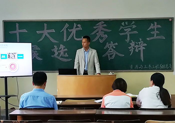 9月26日下午,资土系在3#305举办校区、学院十大优秀大学生系内候选人答辩会,团总支书记程家国及全体辅导员老师出席并担任评委。