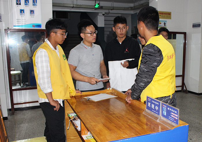 9月24日,资土系自律会2018级新干事正式上岗参加早检及宿检工作。