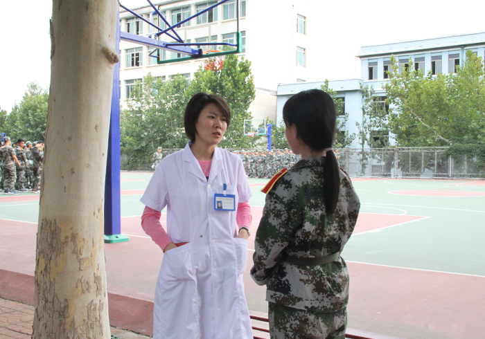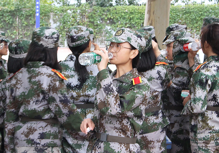 2、军训场地上医生随时提供咨询。 3、坐姿端正如钟,目光炯炯有神。 4、短暂的休息时间,补充一下水分。 5、为自己的训练效果加油打气。 6、一张合影留下这短暂而又美好的瞬间。 7、原地休息,谈论新校园中的精彩轶事。