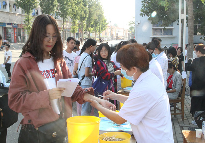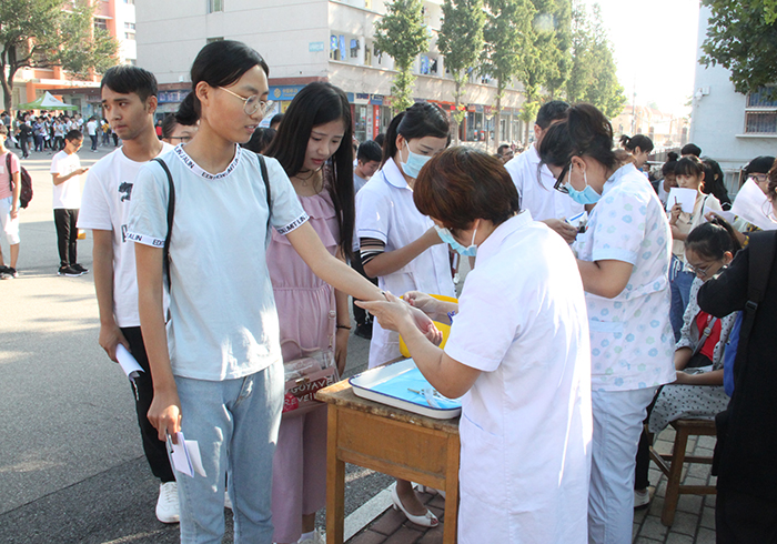 9月9日上午,18级新生在班级助理辅导员的带领下到校医院进行入学体检,体检检查项目包括身高、体重、血压、视力以及结核菌菌素皮内实验。希望每一位新生都能加强体育锻炼,提高自身免疫力,健康的享受大学生活。(文:赵甜星 图:张浩)